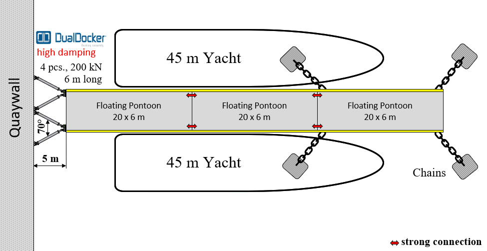 FLOATING PONTOONS For mega yachts up to 100 m! Individual customer requests call for innovative solutions. What if the customer needs a floating pontoon for his 80 m yacht parallel to the quaywall? Challenging location: The conditions at the requested location are really harsh as the floating pontoon is situated at the marina entrance with…